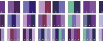Сочетание фиолетового цвета в таблице с розовыми, красными, желтыми, оранжевыми, зелеными, коричневыми, бежевыми и