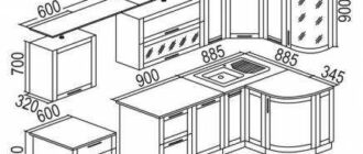 Размеры верхних и нижних кухонных модулей. Габариты шкафов под встроенную технику. Планирование, схемы, чертежи,